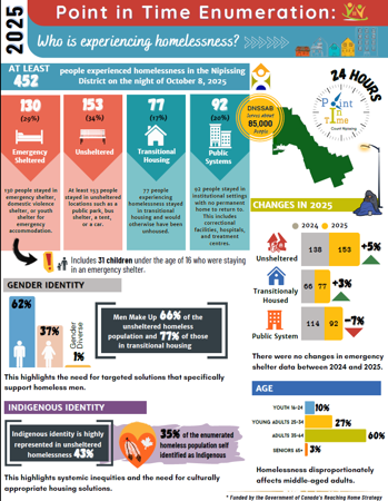 The Housing Services department is responsible for overseeing the administration and funding of an array of housing programs that assist with the current and future housing needs of the citizens in Nipissing District. Specifically, this includes providing supports to our local non-profit housing providers, private landlords, and affordable housing proponents who operate rent-geared to income (RGI) units, rent supplement programs, and affordable housing. Housing Services also directly administers the Centralized Waiting List services for the Nipissing District; a service known as Housing Access Nipissing. Through the Homelessness Partnering Strategy (HPS) and Homelessness Prevention Program (HPP), Housing Services is able to fund programs that address local housing and homelessness priorities.